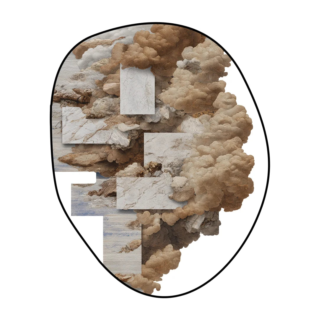 Inspired by the frescoed interiors of Renaissance chapels, Suspended Dust uses a medieval European palette shaped by stone, ash, and age. Solid architectural forms hold drifting dust and air, recalling the moment when light passes through sacred space. Strength and fragility coexist, as structure becomes a vessel for breath, time, and silence.