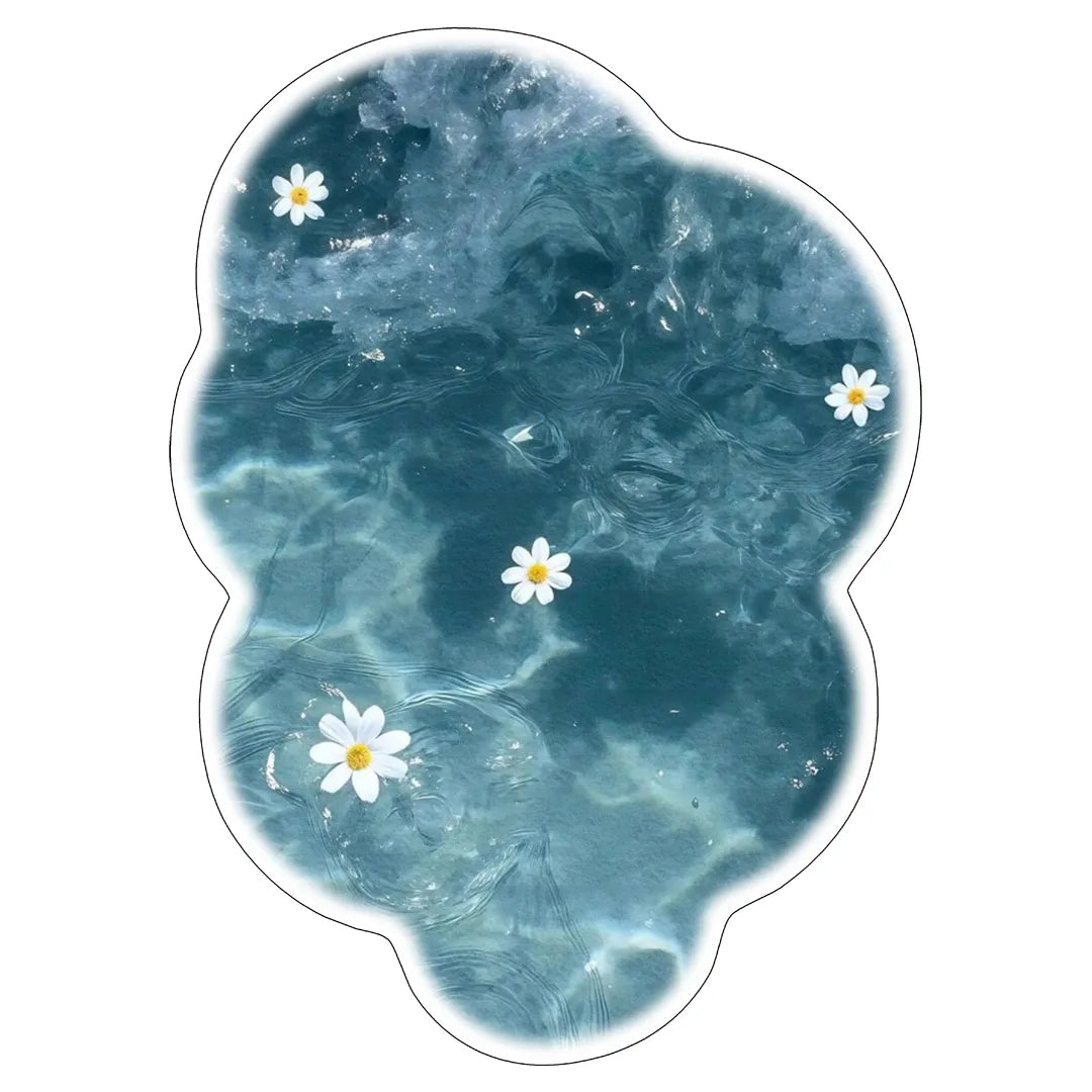 Soft teal ripples and scattered white blooms drift across the surface like a quiet pool at rest. Silent Tide Bloom captures a moment of stillness—where water holds light, movement slows, and the space feels gently open.